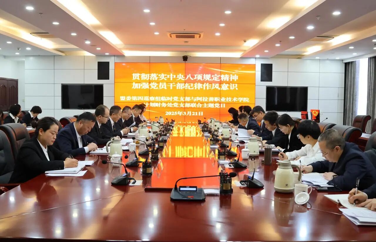 3月21日,盟委第四巡察组临时党支部与阿拉善职业技术学院计划财务处党支部联合开展主题党日活动,专题学习中央八项规定精神,强化纪律作风建设。