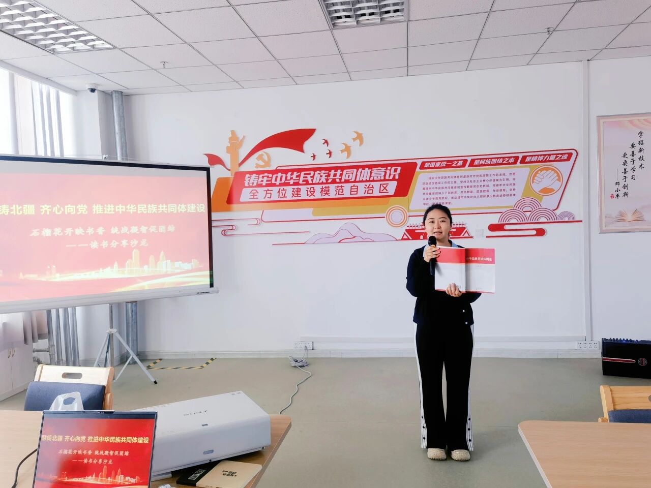 活动通过集体学习《中华民族共同体概论》,分享《为什么是中国》《灿烂千阳》《钢铁是怎样练成的》等优秀作品,结合“民族知识我知道”快问快答、好书推荐等形式,增进了大家对民族知识的深入了解。活动中,学生代表还展示了民族特色歌舞,进一步促进各民族文化的交流交融。